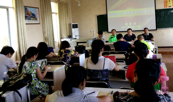 8月27日,商学院在聚贤阁303召开了2017年秋季工作部署大会。商学院班子成员及全体教工参加了会议。大会由商学院党总支书记白颢主持。