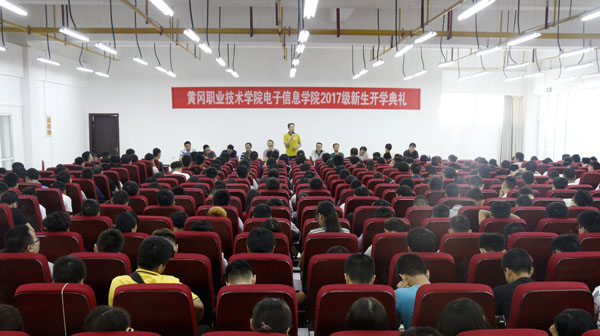 9月7日,电子信息学院在中职教学园中心会议室举行2017级新生开学典礼。电子信息学院党总支书记朱建军、院长罗幼平、副院长孙俊,电子信息学院全体专业负责人、全体辅导员及2017级新生参加了开学典礼。会议由党总支副书记程朗主持。