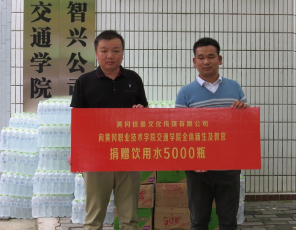 饮水思源,感恩情深。9月11日下午,taptap点点交通学院物流201202班优秀校友、黄冈佳曼传媒有限公司总经理周红超,专程来到母校,向交通学院捐赠饮用水5000瓶,用于学院学生活动的开展。交通学院院长宋广辉代表交通学院接受了捐赠。