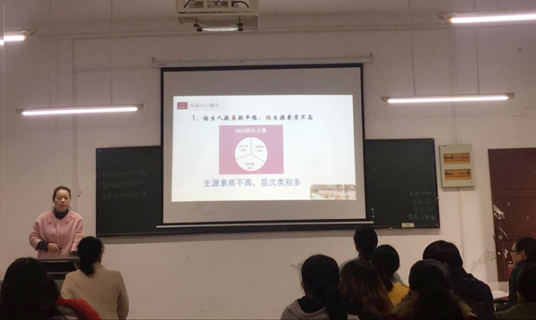根据学校统一部署的“院长说教改、课程(专业)主任说教改、教师说课改”相关活动精神,护理学院于11月16日下午3点组织召开专业主任说教改的活动。活动由副院长饶凤英主持,全体教职工参与。