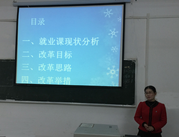为认真落实学校《关于举办专业(课程)主任说教改大赛的通知》文件精神,11月16日下午,马克思主义学院、大学生就业与创业指导中心联合在聚贤阁102教室开展“教学改革大讨论之课程主任说教改”活动。马克思主义学院领导班子成员以及全体教师参加了本次活动。活动由副院长侯利平主持。