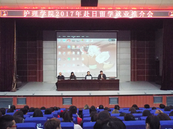 为提供良好的信息沟通渠道和就业平台,让学生提前了解国内外护理行业的竞争需求,护理学院于2017年11月16日在学术报告厅举行赴日留学就业推介会,邀请黄冈师范学院外国语学院副教授、留日硕士黄锡锋,赴日项目《护士定向委托培养》负责人樊金平担任主讲。会议由项目经理殷维主持。护理学院党总支副书记张朋生、辅导员老师及学生代表参加会议。