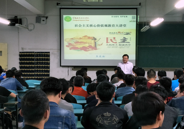 社会主义核心价值观教育大讲堂的开展,是机电学院思想政治教育工作的一次创新,也是积极践行社会主义核心价值观的重要举措。机电学院思想政治教育专题化、制度化、常态化,社会主义核心价值观进教室、进宿舍、进头脑,对青年学生树立远大理想、坚定社会主义信念、养成良好学习习惯,奠定了扎实的基础。