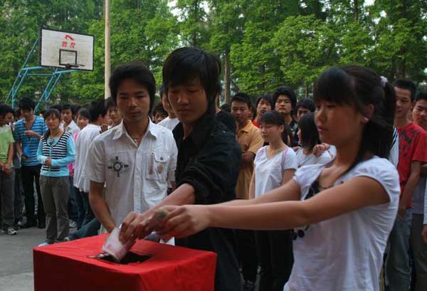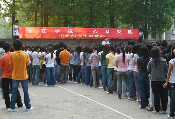 身在学院 心系灾区 ——黄冈职院中专部师生踊跃向汶川地震灾区捐款 来源: 作者: 发布时间:2016-01-18 13:40:19 浏览次数: 次 【字体:小 大】 四川汶川地震灾区灾情深深牵动着黄冈职院中专部全体师生。汶川人民身受痛苦,中专部师生心受煎熬,中专部学生会、团总支及时向同学们发出倡议:节约一杯早餐奶、少吃一份菜捐款援助我同胞、救助我兄弟姐妹!国家有难、匹夫有责! 5月15日,全体中专部同学集聚在校园南区操场踊跃捐款,合计捐款3380.80元。同学们纷纷表示:要更加勤奋学习、精通技能,为将来报效祖国、回报社会积蓄力量! 分享到: 【打印正文】
