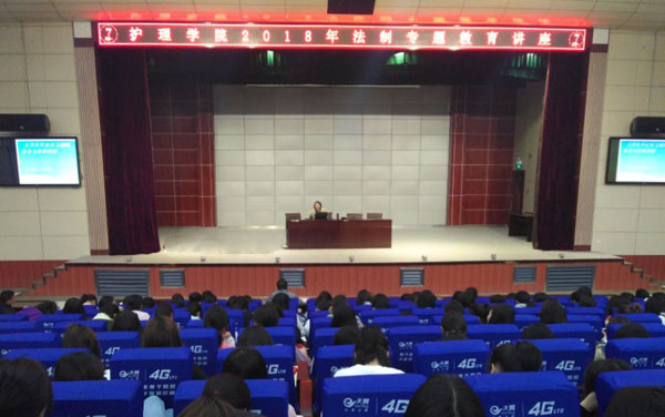 为进一步增强学生的法制观念,提高自我保护和防范意识, 2018年4月23日下午及晚上,护理学院邀请马克思主义学院秦红兰教授为全体16级学生开展了两场法制专题教育讲座,讲座由护理学院党总支副书记张朋生主持。本次讲座是继去年新生法制教育之后,学院专门针对即将进行实习的学生开展的法制教育系列活动。