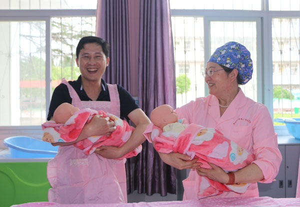 随着国家二胎政策开放,男方在女方休产假期间也有了育儿假,爸爸们有了更多参与宝宝护理的机会。为普及育儿知识,护理学院助产专业团队教师于5月17号上午9:00到11:00在崇贤阁一楼“母婴保健服务中心”,面向南湖社区群众及学校的教职工,开展了“准爸爸”育儿培训活动 。