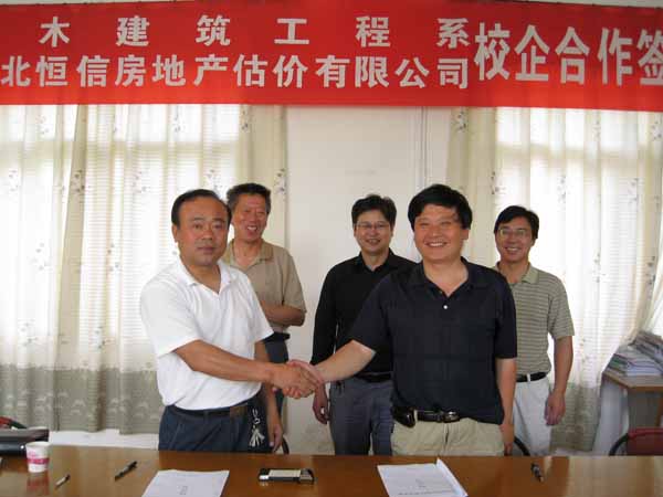 首先,刘晓敏致欢迎词,对来宾的到来表示热列的欢迎;并介绍了学院和系里的发展和专业建设情况,对高职教育开放式办学进行阐述,认为随着教学改革的深入,客观上要求更多的房地产企业参与对学生的培养。江平对学院的实力、校企合作的办学模式、工学结合的人才培养方式、学生的能力和素质表示肯定,并介绍了公司的发展情况,同时表达对人才的需求和进一步深度合作的意愿。冯灵武对此次校企合作给予高度评价:是对土木系校企合作的完善和丰富,将进一步推动土木系的专业教学改革。最后,刘晓敏和江平在协议书上签字,并合影留念。签字仪式取得圆满成功。