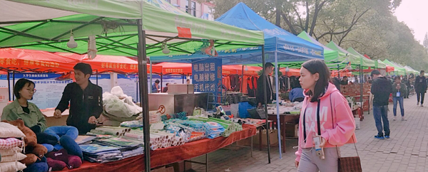 11月3日-4日,学校大学生创业实践基地热闹非凡,商家云集,由大学生创新创业俱乐部和就业创业协会共同承办的创业实践活动——商品展销会在此举行。