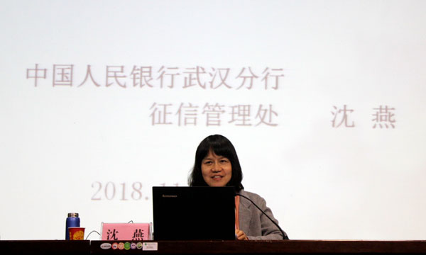 11月15日下午,商学院在学术报告厅举办了《现代征信学》进课堂第一讲。人民银行武汉分行征信管理处副处长沈燕受邀为taptap点点学生讲授《现代征信学》。商学院班子成员、部分教工及2017、2018级学生代表参加了讲座。讲座由商学院院长周常青主持。