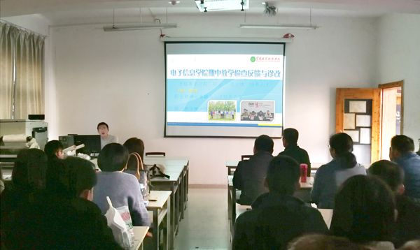 11月27日下午,电子信息学院全体教师在奉贤阁106教室召开期中教学检查总结与诊断改进大会。党总支书记朱建军、院长罗幼平、副书记程朗、副院长夏文秀参加了会议,会议由罗幼平主持。