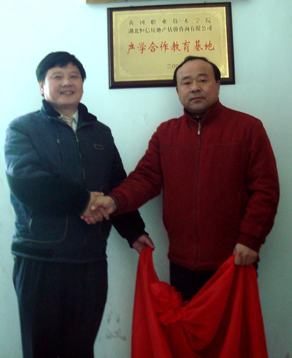 年1月1日上午,阳光普照,土木建筑工程系与湖北恒信房地产估价咨询有限公司在黄州举行产学合作教育基地揭牌仪式。参加挂牌仪式的有土木建筑工程系党总支书记冯灵武、系主任刘晓敏、学管书记黄正东和湖北恒信房地产估价咨询有限公司董事长兼总经理江平及全体员工。