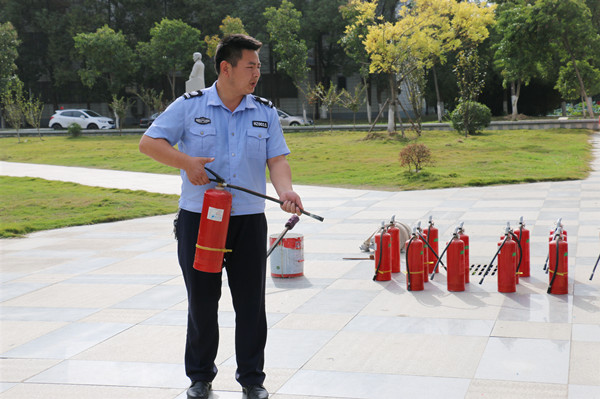 余强首先介绍了灭火器的使用和消防栓的对接方法,随后在齐贤阁门口组织了消防安全演练,模拟了发生火灾的场景,演练了多种消防设施。老师们听从指挥,有序地分批次进行操练,人人动手,掌握了灭火器的正确使用方法。
