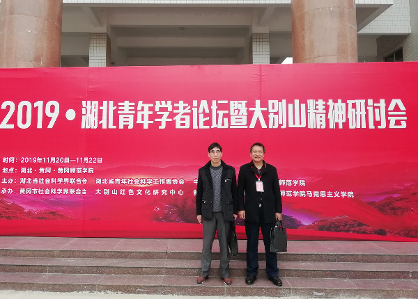 11月20至22日,2019湖北青年论坛暨大别山精神研讨会在黄冈师范学院举行。此次研讨会由湖北省社会科学界联合会、湖北省青年社会科学工作者协会、黄冈市委宣传部、黄冈师范学院联合主办。省社科联党组书记、常务副主席喻立平,省社科联党组成员、副主席王其涛,黄冈市市委常委、市委秘书长、宣传部部长李初敏出席会议并讲话,黄冈师范学院党委书记王立兵致欢迎词,黄冈师范学院校长陈向军出席会议。出席本次研讨会的领导和专家学者100余人,马克思主义学院叶季夏、尹田生两位教师受邀参会。