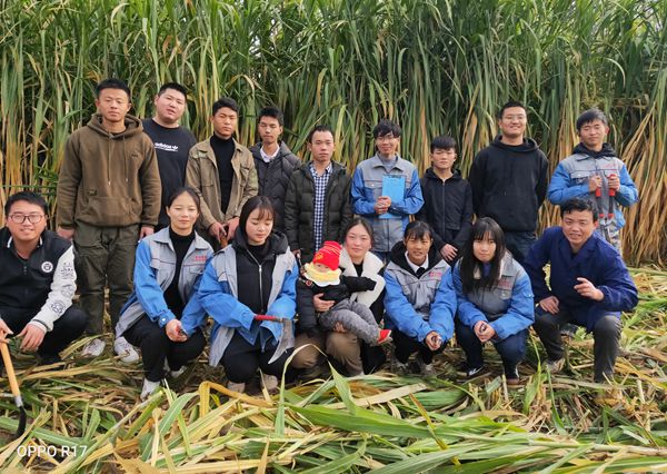 2019年12月21至22日,周末,北风阵阵、细雨濛濛。生物与制药工程学院杨辉德、张敏老师带领现代农业201901班全班学生,对校内种植的巨菌草进行了产量测定及越冬试验。