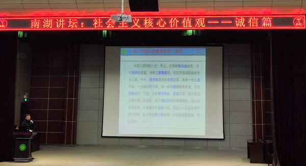12月24日下午,由护理学院团总支承办的“南湖道德讲坛-诚信篇”主题教育活动在学术报告厅举行。护理学院党总支副书记张朋生、团总支副书记郑伟、护理学院全体专兼职辅导员及600余名学生参与了本次活动。本次南湖道德讲坛由护理学院党总支副书记张朋生主讲。