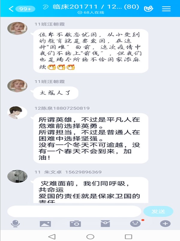 学生们也纷纷在班级QQ群及微信群发表观后感言。