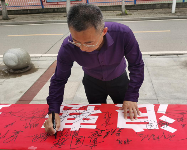 活动现场,交通学院党总支书记黄国祥,副书记吴冬及路过的师生来到横幅前,签下自己的名字。黄国祥指出厉行节约应从节约每一度电、一滴水、一张纸、一粒米做起,坚决制止餐饮浪费。他承诺将自觉践行“光盘行动”,养成珍惜粮食、厉行节约的好习惯,向“舌尖上的浪费”说“不”。