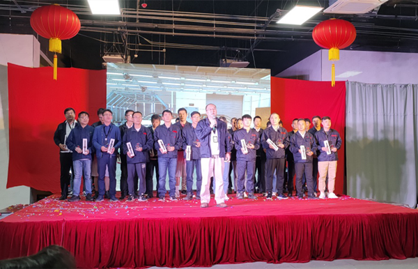 星晖公司年先进表彰大会在公司礼堂圆满召开。会议对公司先进集体和个人进行表彰,分别颁发了优秀培训师、优秀员工和优秀集体等奖项。