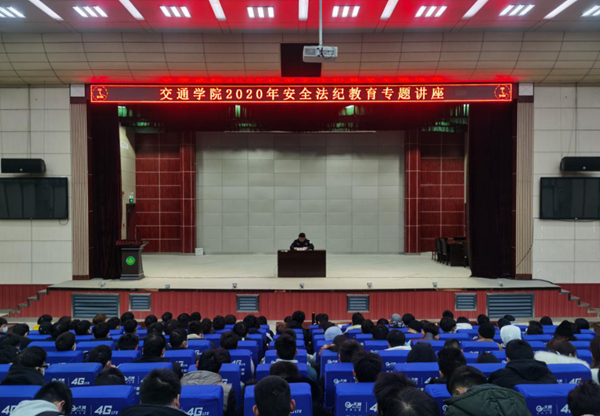 12月17日下午,交通学院在学术报告厅召开2020年安全法纪教育专题讲座。交通学院560名学生到场聆听。讲座由黄冈市公安局黄州区分局副政委尹焯担任主讲,交通学院党总支副书记吴冬主持。