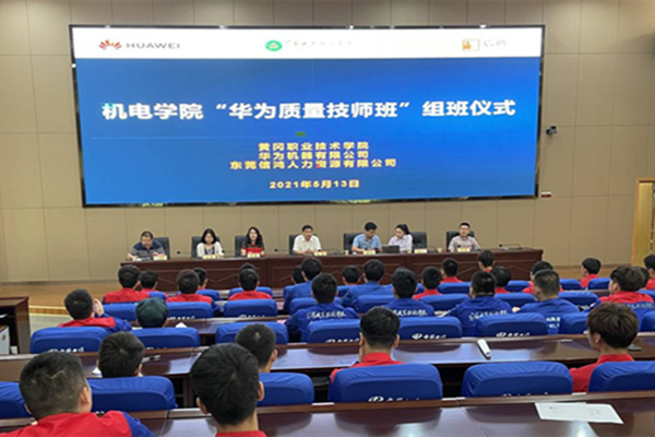 5月13日,机电学院2020级“华为质量技师班”组班仪式在教师发展中心1号报告厅举行。华为机器有限公司人力资源部招聘经理胡利民等6名企业代表,机电学院党总支书记杨勇及110名有意向的学生参加了现场活动,仪式由机电学院党总支副书记焦爱新主持。
