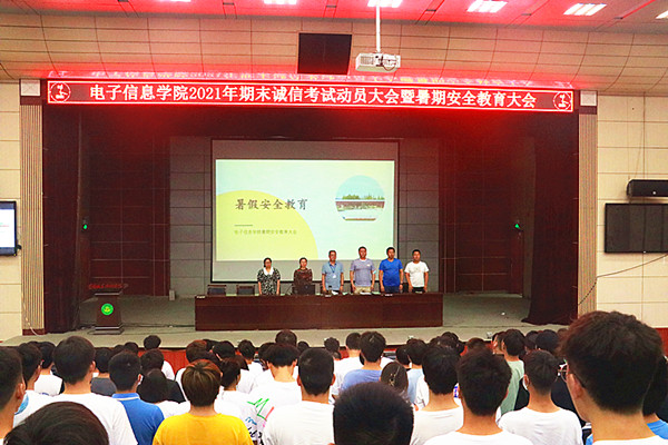 为营造良好校风学风,加强诚信教育,严肃考风考纪;为帮助学生度过一个安全愉快的暑假,6月18日晚,电子信息学院在学术报告厅召开期末诚信考试动员大会暨暑期安全教育大会。学院党总支副书记程朗、副院长夏文秀、全体专兼职辅导员、2019级学生代表及2020级全体学生参加了本次大会。会议由团总支副书记刘可主持。