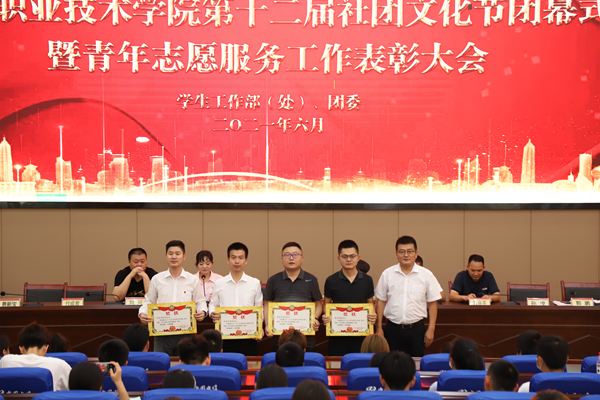 活动在庄严的国歌声中拉开帷幕,肇芬宣读了《关于表彰2020—2021学年度学生社团工作先进集体和先进个人的决定》。护理学院团总支、医药学院团总支、商学院团总支、交通学院团总支荣获“学生社团工作先进集体”称号,护理协会、学前教育百花社团、大学生艺术团荣获“五星级社团”称号,红十字会、广播台、康复协会等6个社团荣获“四星级学生社团”称号,武术协会、青年马克思主义协会、羽毛球协会等10个社团荣获“三星级学生社团”称号,吴汉林、雷平康、夏一睿等89名同学荣获“优秀学生社团干部”称号,刘艺德、孙嘉琪、王浩等143名同学荣获“优秀学生社团会员”称号。