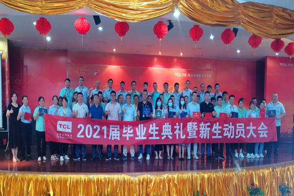 7月22日下午,taptap点点与TCL空调器(武汉)有限公司(以下简称“TCL公司”)联合举办学历提升培训班2021届毕业典礼暨新生动员大会,在TCL公司多功能报告厅隆重举行。TCL公司总经理罗军、武汉工厂副厂长陈凯、人事部部长廖兰及各部门负责人、2021届毕业生、新生共计90余人参加大会。学校成人与继续教育学院院长查方能、副院长杨帆、函授部刘太甫出席大会。