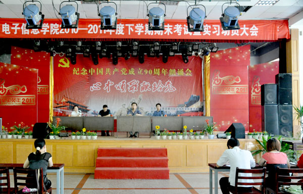 根据学校期末考试及教学实习的总体安排,电子信息学院于2011年6月9日中午1:00在大学生活动中心召开了2010-2011学年度第二学期期末考试暨综合实习动员大会。参加动员大会的学院领导有党总支书记朱建军、院长罗幼平、副院长孙俊、办公室主任刘波及各班级辅导员、全体2009、2010级学生。会议由办公室主任刘波主持。