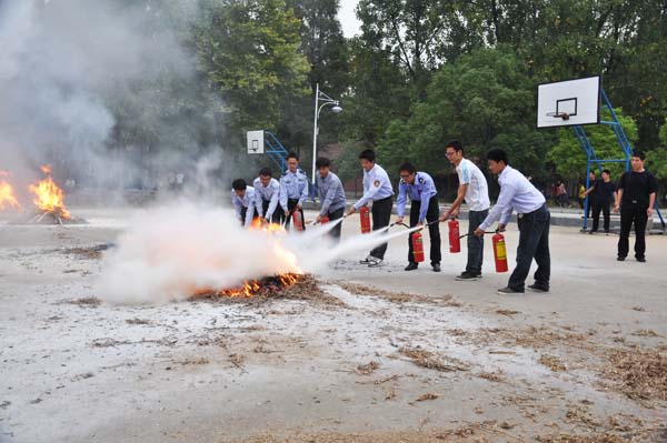 为普及消防安全知识,掌握消防灭火技能,同时,为确保学校2011年“迎新生、庆国庆”焰火文艺晚会消防安全。9月27日,保卫处组织了消防灭火演练活动。参加演练的人员有校卫队学生干部、学生义务消防员及保卫处特勤队员、各区消防员。