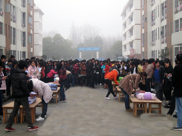 3月18日9:00,医药卫生学院劳生部、女生部在东四舍门前举办了以“寝室美观,被子当先”为主题的叠被子比赛。学生科闫林军、李德华、彭晨老师参加了此次活动,李德华老师为主评委。