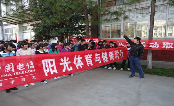 启动仪式上,公共课部教师、健美操协会指导老师左利亚向全校师生宣传了此次春季长跑活动的意义,并号召全校师生都积极参与到“阳光体育”春季长跑活动中去。随后,学生代表宣读了此次活动的倡议书,倡议全体学生树立“健康第一”的理念,以饱满的热情投入到阳光体育运动中来,强健体魄,锻炼意志。师生们纷纷在“阳光体育与全民健身同行”横幅上签名,以表决心。随着一声发令枪响,同学们高喊“阳光体育与健康同行”的口号拉开了“阳光体育”春季跑步锻炼的序幕。