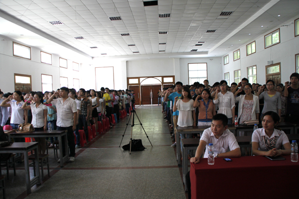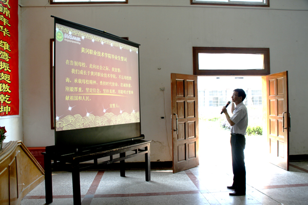 在学生工作处处长、团委书记叶华光的带领下,全体2013届毕业生进行了庄严隆重的毕业宣誓。同学们神情专注地站立在誓词前,满怀激情地举起右手,铿锵有力地承诺:不忘母校教诲,坚定信念,坚持真理,用自己的聪明才智奉献祖国和人民。