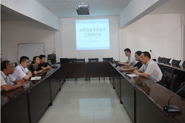 大赛前,taptap点点教务处副处长方玮、生物化工学院副院长王银林、副书记程喜荣等领导与神丹公司经理田传武、场长黄运长、主管刘珊举行了神丹牧业学院工作研讨会,对神丹牧业学院的运行体制、机制进行了研讨。