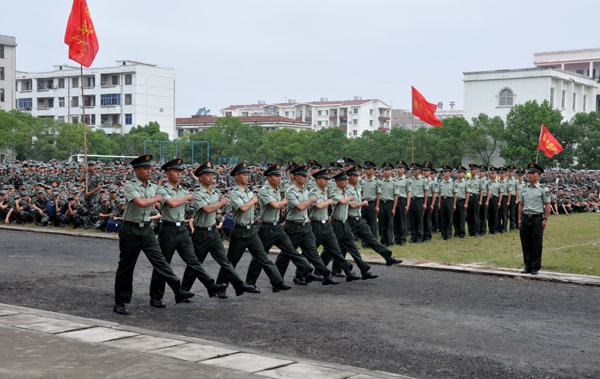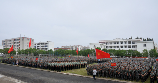 学校工会主席郑柏松为全体新生作了动员报告。他代表学校对全体新生表示热烈的欢迎,对承训部队的官兵表达了衷心的感谢。他要求全体受训学生在十二天短暂的军训中,要迎难而上,充分领悟军人的风采,培养国防意识、集体意识,增强组织观念,牢固树立勇于磨练、敢于摔打的信心和勇气,顺利完成军训科目。