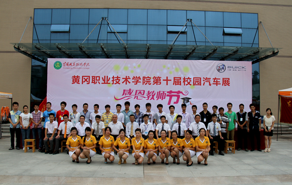 2013年9月10日,黄冈职院校园车展献礼教师节活动在汇贤阁广场隆重举行。参加本次车展的领导与嘉宾有学校党委委员、工会主席郑柏松,交通学院党总支书记钟彬杉,黄冈别克4S店总经理杨凡,各品牌参展商代表。学校汽车爱好者协会近100余名学生参加了本次活动。