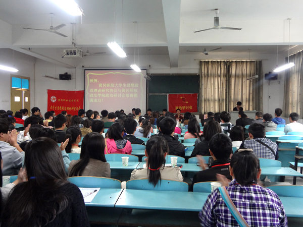2013年10月27日上午taptap点点大学生思想政治理论研究协会(以下简称黄冈职院政研会)在育贤阁104教室成功举办黄冈职院政研会与黄冈师范学院政治研讨会第三届交流会。出席此次会议的嘉宾有:黄冈师范学院政法学院辅导员项彦超老师、黄冈职院政研会指导老师尹田生老师,黄冈职院社团联合会部长陈文峰,黄冈师院政治研讨会和黄冈职院政研会负责人。黄冈师范学院政治研讨会和黄冈职院政研会全体成员以及各兄弟社团代表100多人参加交流会。会议由黄冈职院政研会副会长刘迁主持。