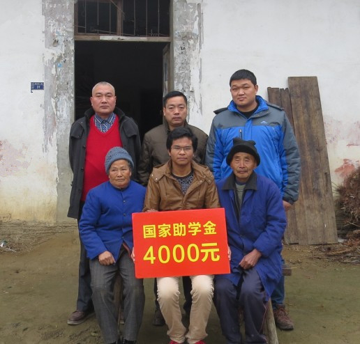 钟彬杉等不辞辛劳,一路颠簸,乘车3个小时后,步行至该生家中,与其爷爷、奶奶促膝而谈,并亲自送去了食用油、米面等慰问品和国家一等助学金4000元,关切地问候该生家庭的生活情况,并鼓励陈龙同学要树立信心,克服困难,不辜负国家、学校和家庭的期望。临别时,两位老人感动得热泪盈眶。