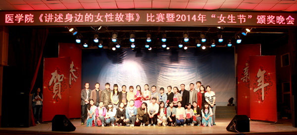 3月30日18:30,医药卫生学院“讲述身边的女性故事”比赛暨2014年女生节颁奖晚会在大学生活动中心隆重举行。医药卫生学院学生科(团委)的张朋生、朱卫东、曹俊峰、闫林军、李德华、郑伟等6位老师担任评委。近千名学生代表和医药卫生学院全体辅导员观看了本次晚会。