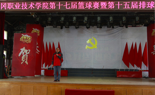 2015年4月12日上午9点,学校第十七届篮球赛暨第十五届排球赛开幕式在大学生活动中心举行。出席本次开幕式的领导老师有学工处处长熊楚舒,学工处副处长、校团委副书记陈胜红,学生管理科副科长吴冬、宿管中心主任魏传钧、公共课部体育教研室刘家乐和校团委汲艳蕊老师,各协会代表。