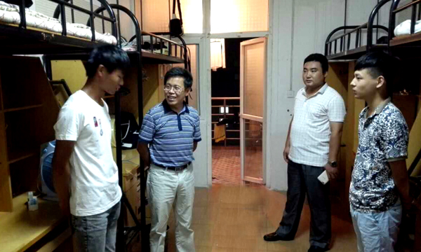 学院领导及老师每到一间宿舍都和新生们亲切交谈,详细询问了新生的基本情况、何时报到、报读那个专业、对住宿和学校食堂伙食满意不满意等情况。临别之时还不时提醒新生在新的环境里对推销人员或陌生人一定要提高警惕,发现问题及时上报,切实保障个人的人身和财产安全。