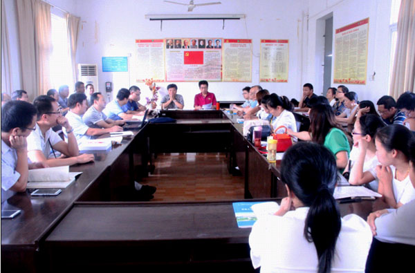 副书记刘国峰带领大家学习市委书记刘雪荣同志在市委全委扩大会议上的讲话精神。总支书记朱建军对全体党员干部就开展党风廉政建设警示教育提出要求:第一要守纪律、讲规矩,与党中央和上级党组织保持高度一致;第二要严格要求、扎实工作,按照从严治党、“三严三实”的要求落实到位;第三要自警自省、争当表率,始终保持共产党员的先进性。