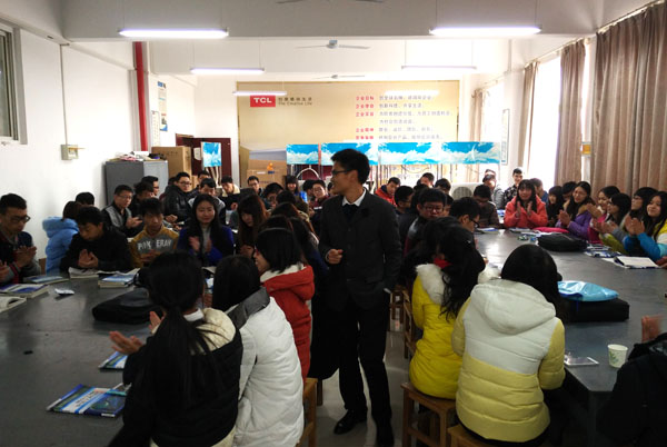 李心安刚迈进教室,同学们便报以热烈的掌声欢迎他的到来,感谢他对同学们在实习期间给予的无私帮助。随后,李心安就同学们在公司的实习情况作了深情回忆,对同学们在实习期间的表现给予了充分肯定,对机电学院制冷与冷藏技术专业的历届学生给予了高度评价。