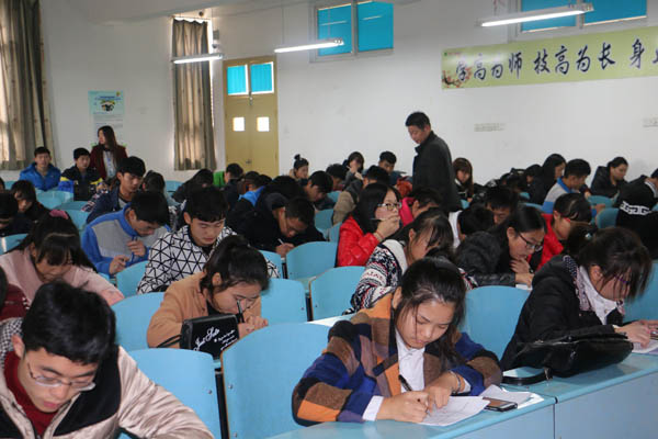 12月3日中午12点30分,由院教务处批准立项的学生校内技能竞赛活动项目——taptap点点第六届规范汉字实用硬笔书写大赛,在育贤阁203、204教室正式拉开帷幕,来自各教学学院的300余名学生选手参加了比赛。本次比赛由公共课部大学语文教学团队主办,校松风阁书画社协办,公共课部主任张克新、副主任江楚义、办公室主任彭红兵亲临现场指导,张克新主任致开幕词并宣布比赛开始。