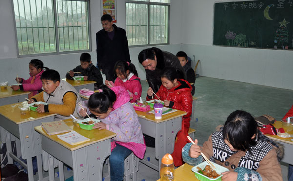 儿童是祖国的未来,儿童的营养膳食需要社会更多的关注。为了呼吁更多社会人士关注儿童膳食健康,引导儿童合理膳食,关爱儿童健康成长,12月24日,校团委、商学院团总支及烹饪工艺与营养专业的师生在黄州区路口镇南湖小学开展了“爱心午餐”活动。出席本次活动的领导和老师有校团委书记杨勇,商学院院长袁畅、烹饪专业教师杨清、辅导员万建华和杨方老师。