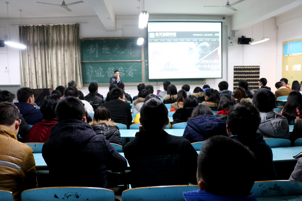 2016年1月9日下午13:30,电子信息学院在育贤阁103、104教室举行优秀校友付英文、韦苏亮创业事迹报告会。电子信息学院党总支书记冯军、电子信息系主任李敏、部分教师、辅导员代表、300多名学生代表参加了报告会。报告会由党总支副书记程朗主持。