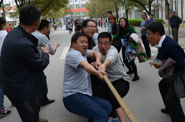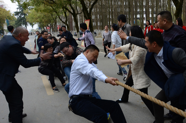 本次比赛,各队16人参加,其中女子10名,男子6名。比赛采用淘汰制,随着裁判长的一声哨响,比赛正式开始。霎时间,呼喊声、加油声一浪高过一浪,只见各队队员个个铆足了劲,奋力拼博。现场,笑声、加油声此起彼伏。热烈的气氛感染了观看的每个人,他们不遗余力地为参赛队员们呐喊助威。经过激烈的角逐,电子信息学院代表队、机电学院代表队、公共课部代表队、医院卫生学院代表一队分别获前4名。
