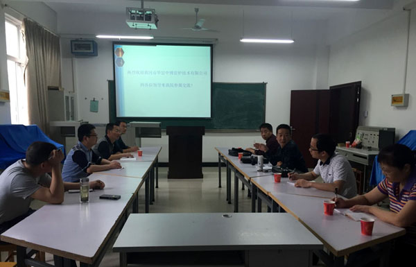 5月7日上午9:00,黄冈市华窑中博窑炉技术有限公司董事长黄四清、技术副总张红安一行7人来taptap点点培训交流。机电学副院长黄国祥,学校质量管理处目标考核办公室副主任宋武、机电学院实训中心副主任马中秋、骨干教师杨芳参加了培训交流活动。培训交流活动在汇贤阁1308传感器实训室举行。培训交流活动由华窑中博窑炉技术有限公司办公室主任兼贸易副总方承恺主持。