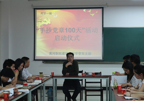 为丰富“两学一做”学习教育形式,切实加强党员干部的思想政治建设,5月12日下午15:40,建筑学院学工支部在汇贤阁3308教室举行“两学一做”学习教育之“手抄党章100天”活动启动仪式。启动仪式由建筑学院学工支部书记田涛主持,学院总支书记朱建军、副书记刘国峰,建筑学院全体支部党员、预备党员参加了启动仪式。