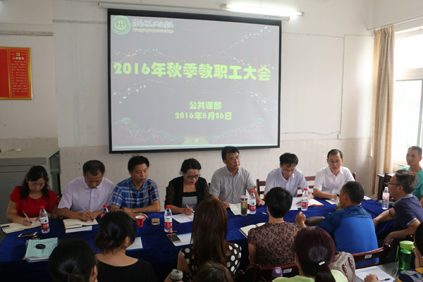8月26日上午,公共课部召开秋季教职工大会。校党委副书记王维华,校组织部常务副部长叶华光,原公共课部班子成员王莹华、张克新、江玲娜及公共课部全体教职工参加了会议。会议由叶华光主持。