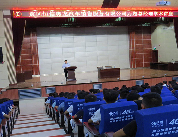 9月7日晚,黄冈恒信奥龙汽车销售服务有限公司总经理万甦应邀来taptap点点学术报告厅做“汽车后市场发展现状与从业人员素质要求”学术讲座。交通学院汽车系各专业副主任、辅导员及2014级、2016级近600名学生到场聆听了讲座。讲座由交通学院副院长聂进主持。